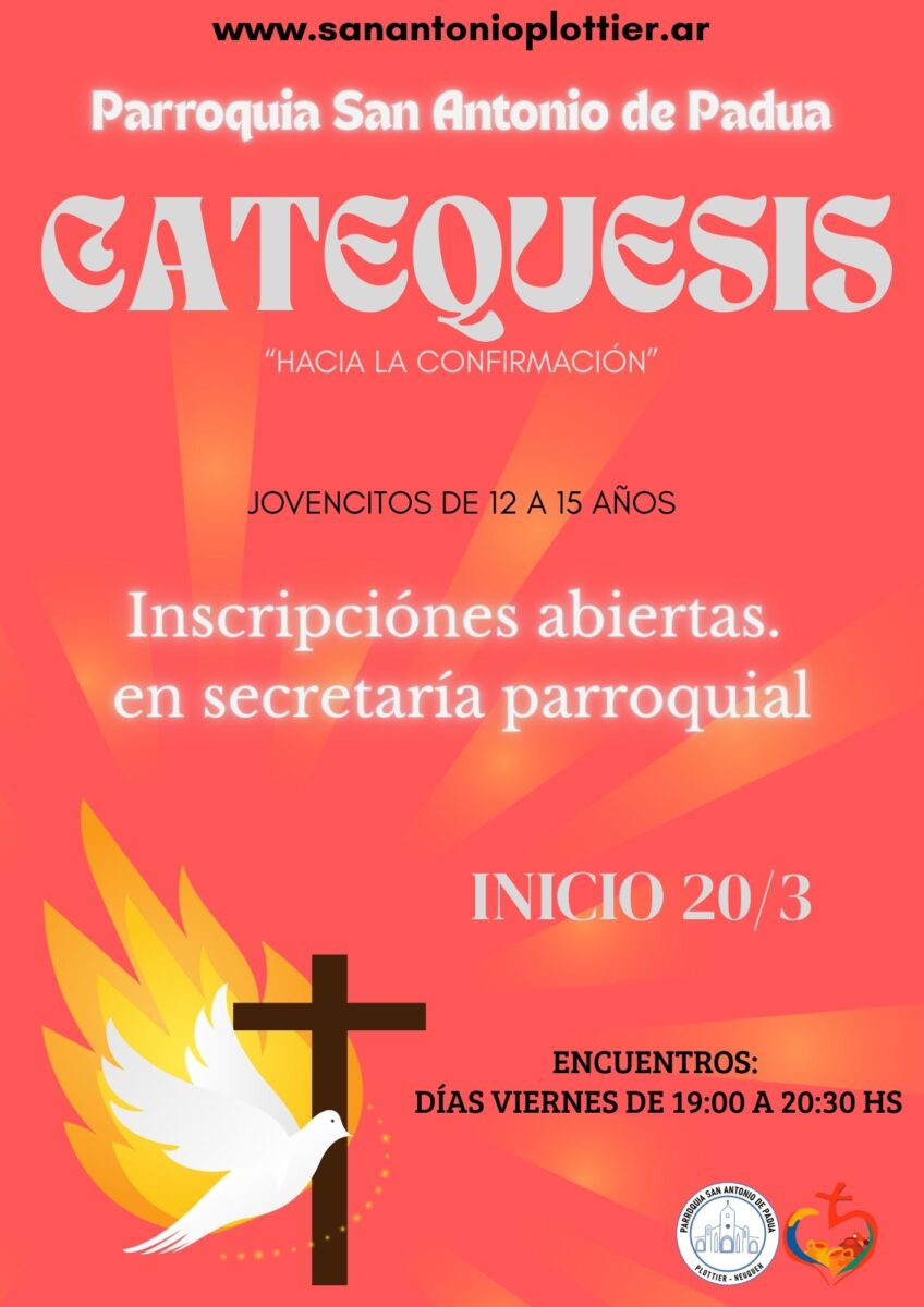 Catequesis de confirmación: Catequesis de iniciación para niños de 12 a 15 años. Está orientada al sacramento de la confirmación. Si el joven no tiene los sacramentos de bautismo y confirmación se prepará en el proceso.