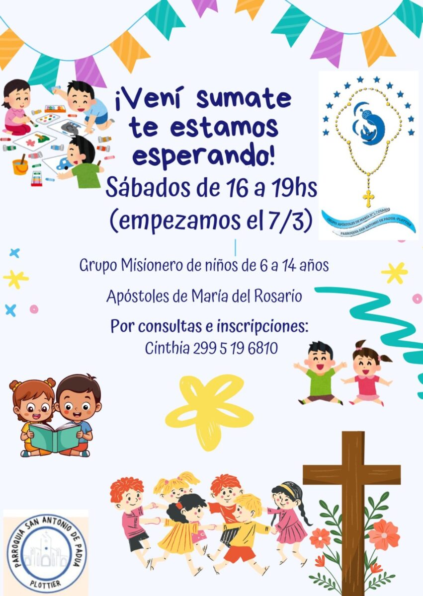 Grupo Apóstoles de María del Rosario: Grupo para niños y adolescentes con catequesis incorporada (de 6 a 14 años).
