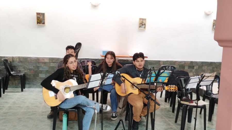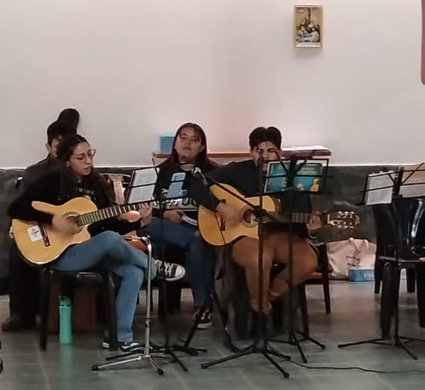 El Coro Juvenil ensaya una hora antes de la misa de los Domingos a la tarde. Se reune en el mismo templo de la parroquia.