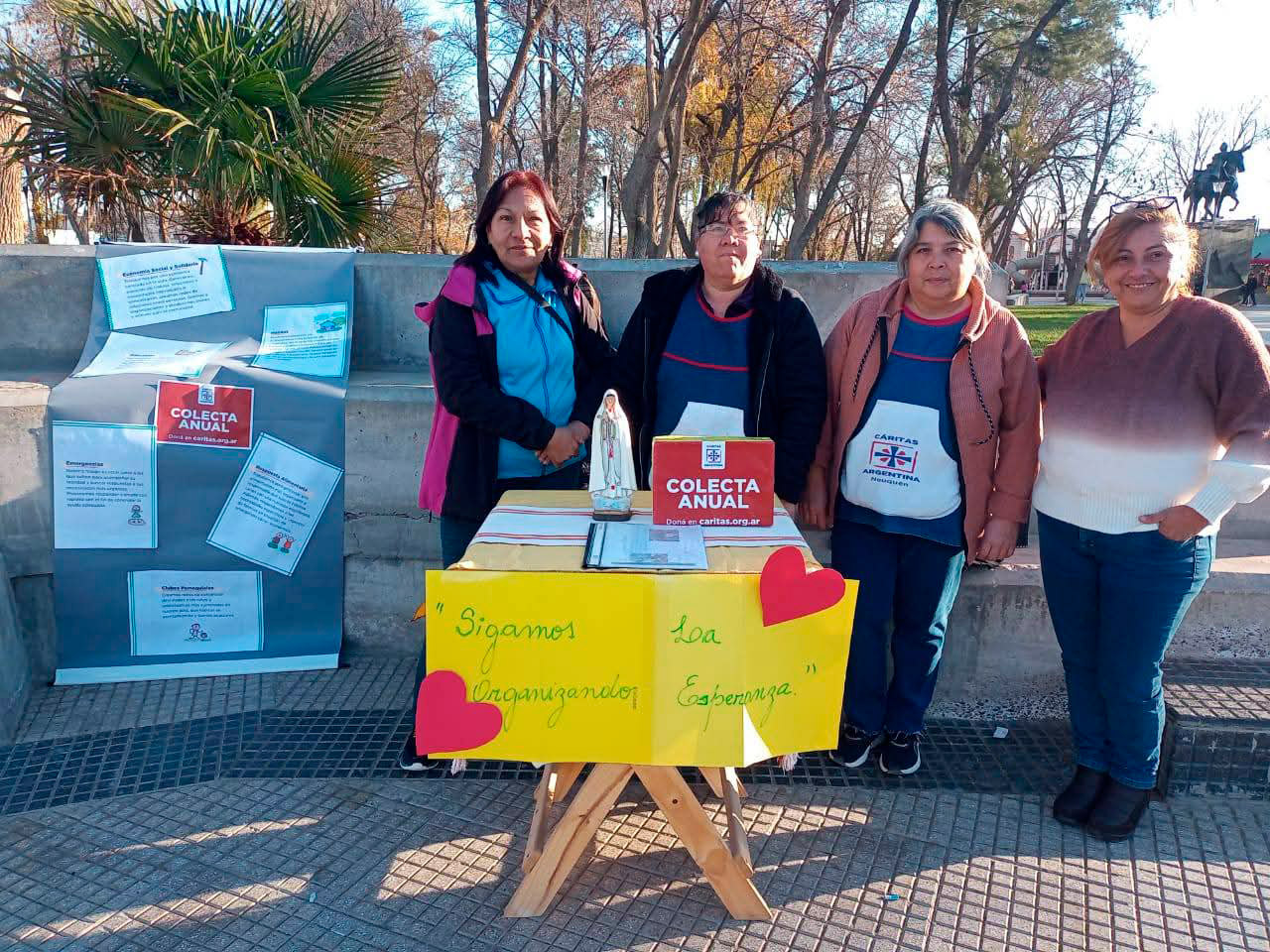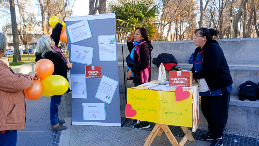 La asistencia alimentaria es un complemento de mercadería mensual que se entrega a familias necesitadas gratuitamente. Funciona con donaciones de un comercio local, del banco Patagónico de alimentos y de la Red Mundial de Oración del Papa (ex Apostolado de la Oración). Sin embargo, para completar el módulo de mercadería debemos comprar algunos productos.