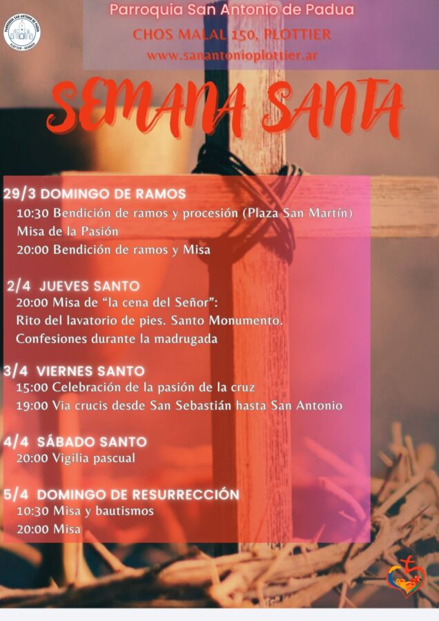 Bendición de ramos (sin procesión) y misa 20:00 hs.